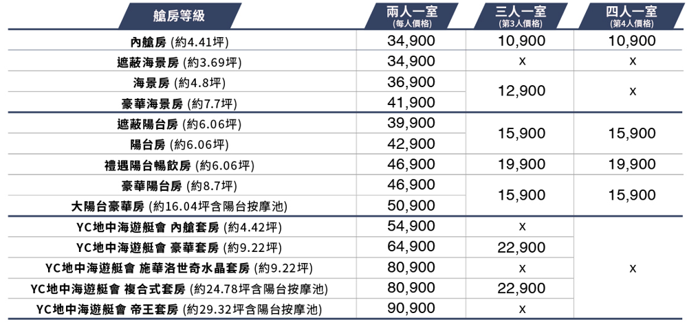 2026年3/12 出發NT34,900元起(全程郵輪住宿/含稅價)