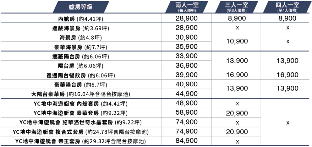 2026年3/8 出發NT28,900元起(全程郵輪住宿/含稅價)