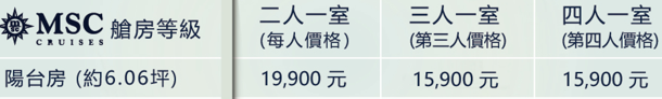 2026/06/09出發NT19,900元起(全程郵輪住宿/含稅價)