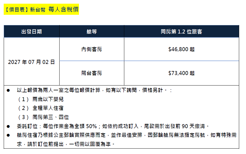 *您可自費參加郵輪公司規劃的岸上觀光行程*