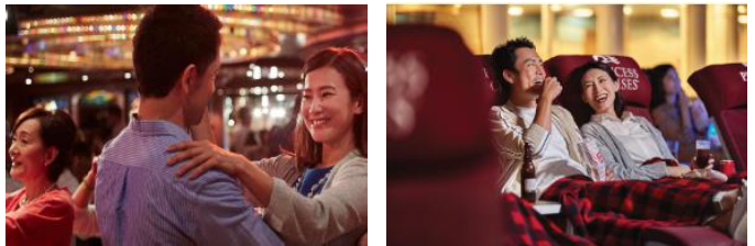 在甲板迎著海風散步,或到自助餐廳悠閒享用早餐,看著一望無際的海景慢慢甦醒。白天時間可以選擇在泳池畔曬太陽、泡按摩池放鬆身心,也能參加船上安排的舞蹈課、手作活動或主題講座,讓海上時光既輕鬆又充實。夜晚更是精彩,精緻晚餐後,還有百老匯等級的劇院表演、現場音樂、酒吧小酌等,讓海上日從早到晚都不無聊。