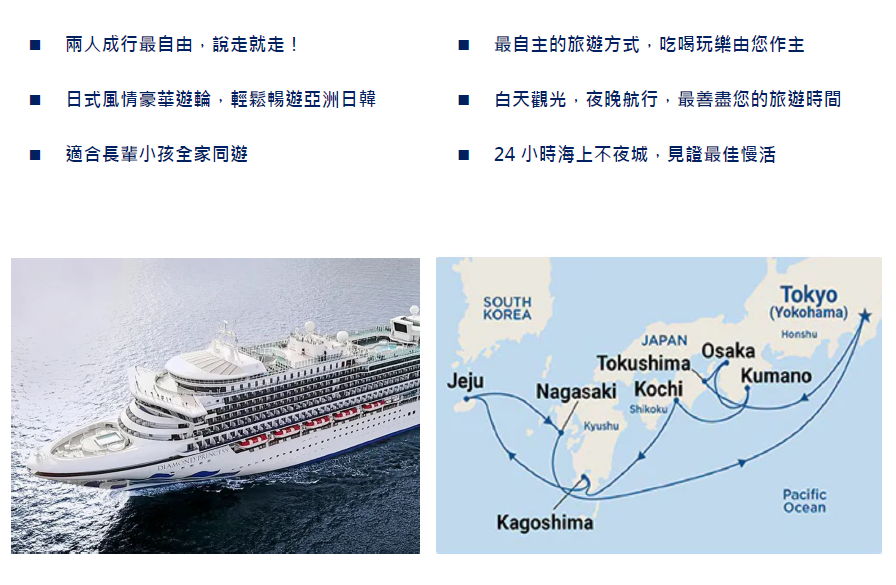 日式風情豪華遊輪,︀輕鬆暢遊亞洲日韓