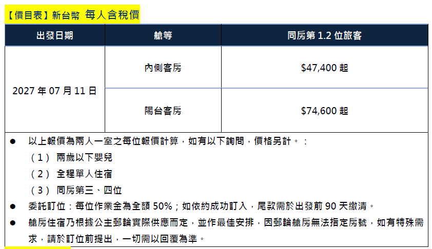 *您可自費參加郵輪公司規劃的岸上觀光行程*