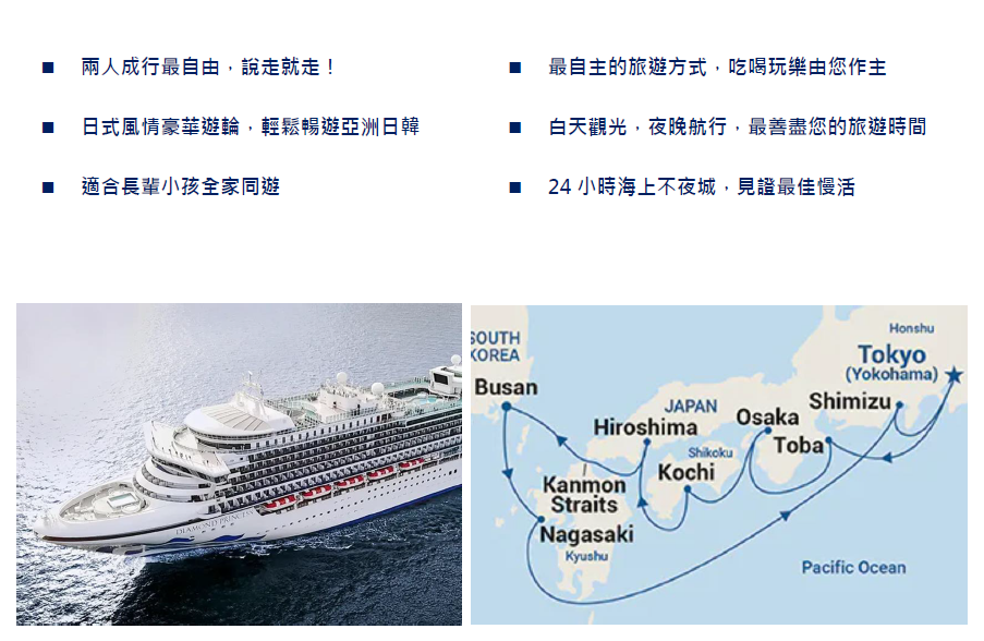日式風情豪華遊輪,︀輕鬆暢遊亞洲日韓