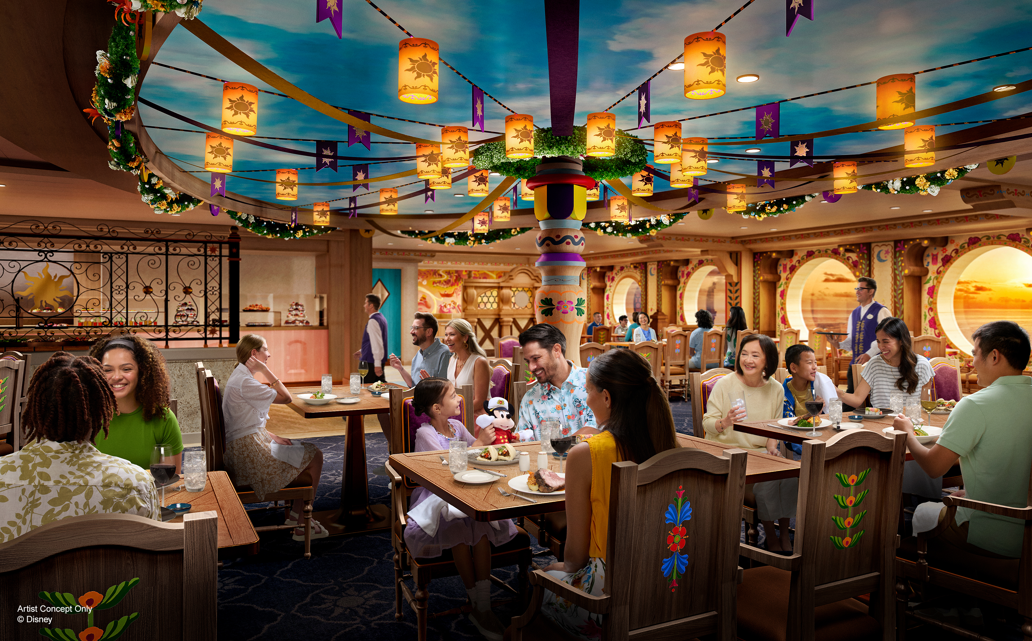體驗多種主題區並盡情欣賞迪士尼歌曲、搶先觀看新片與角色的精彩舞台演出後還可以縱享迪士尼郵輪的招牌美食與完美服務。各間餐廳極富想像力,為各位奉上超越餐食本身的用餐體驗,在沉浸式主題和迪士尼奇妙娛樂的縈繞下品味最愛的迪士尼故事。