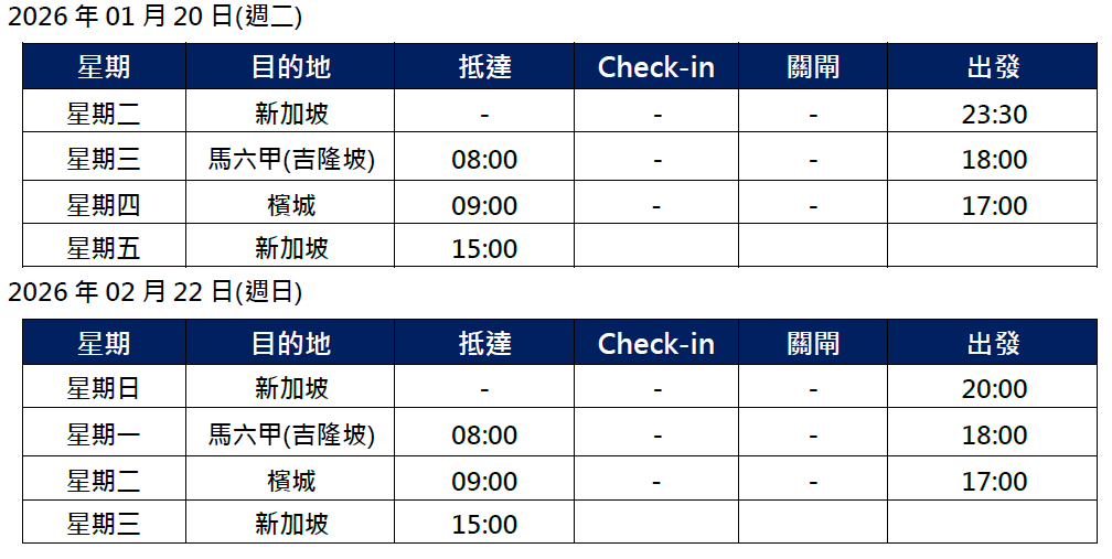 4天3夜 新加坡-馬六甲(吉隆坡)-檳城-新加坡 (僅供參考,以實際行前資料為主)