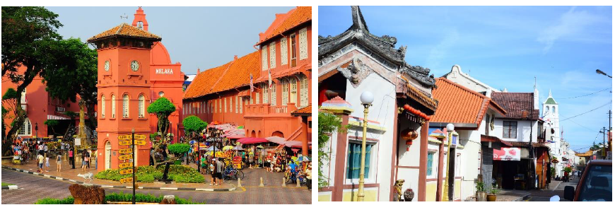 由於長期的殖民與貿易背景,馬六甲融合了馬來、中華、歐洲文化,被譽為「活的歷史博物館」,其歷史城區亦列為世界文化遺產。