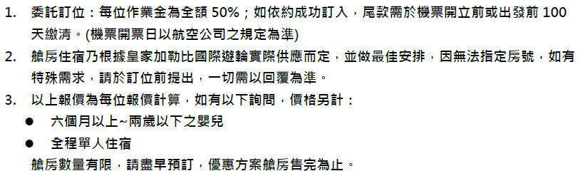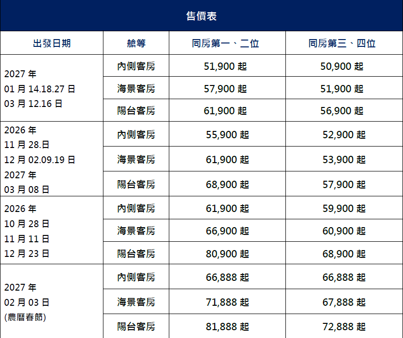 (僅供參考,實際以行前資料為主,以下日期為開船日)