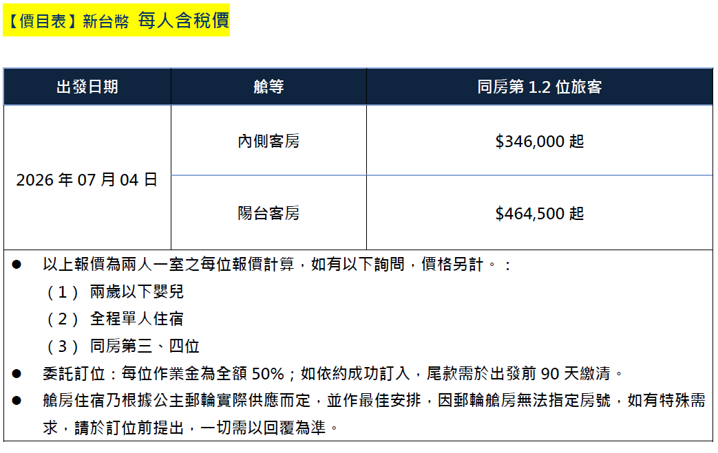 ♦白天觀光,夜晚航行,最善盡您的旅遊時間