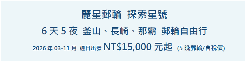 2026 年 3/1、5/24、9/27、11/22 週日出發 NT$ 15,000元起