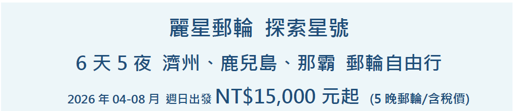 2026 年 04-08月 週日出發 NT$ 15,000元起
