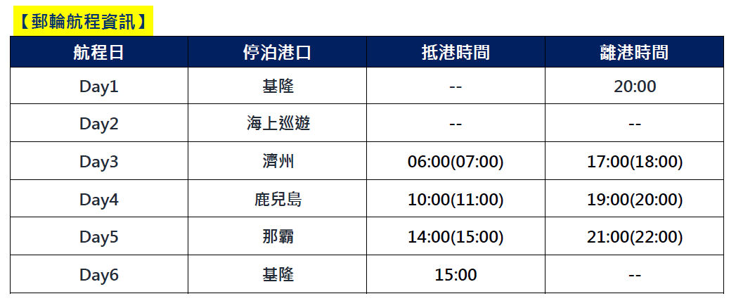 | DAY 5 | 那霸 | 14:00 | 21:00 |
