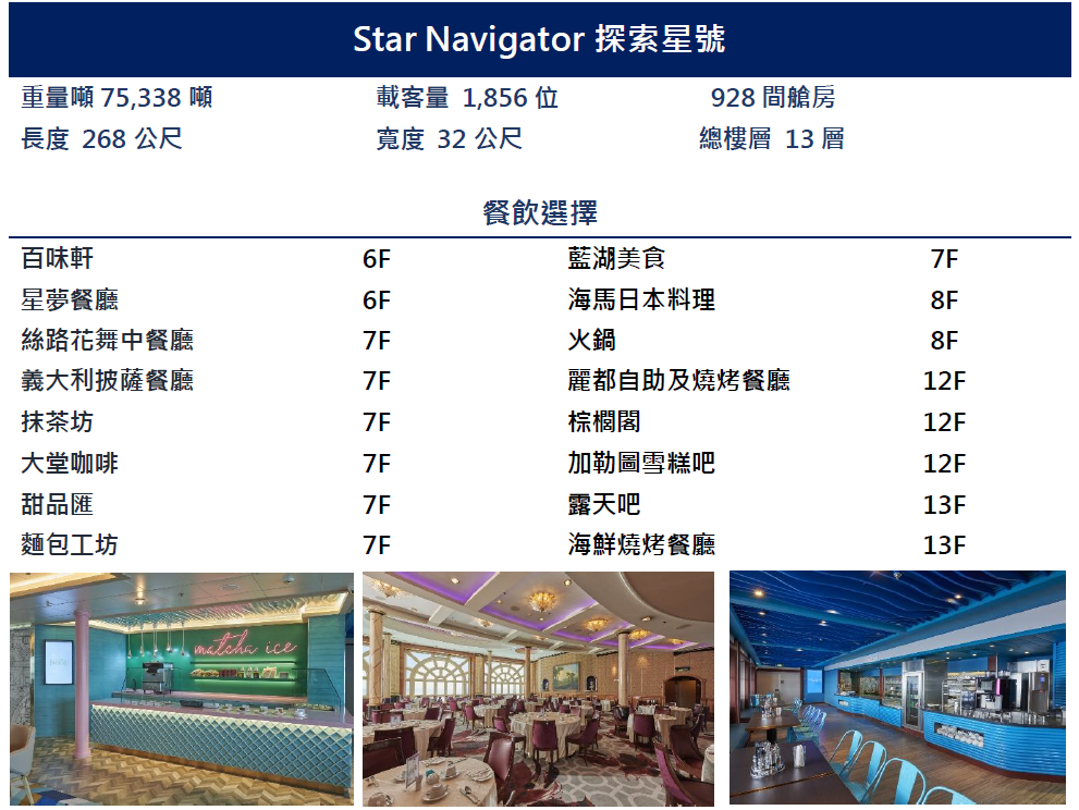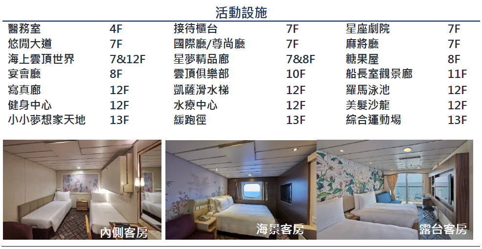 登輪碼頭: 基隆市仁愛區港西街16號18號(探索星郵輪櫃台)