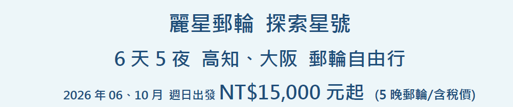 2026年 6/28、10/25 週日出發 NT$15,000元起