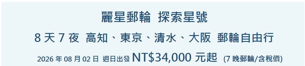2026年 08月02日 週日出發 NT$34,000元起